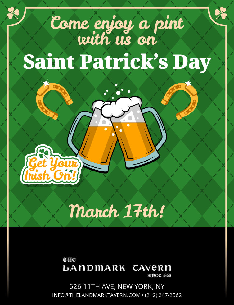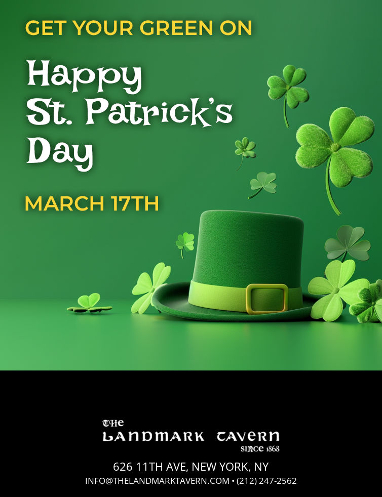 In 1868 Patrick Henry Carley opened his Landmark Tavern, a Classic Old New York Tavern. In those days there was no 12th Avenue, just the shores of the Hudson, on which his Tavern sat.
